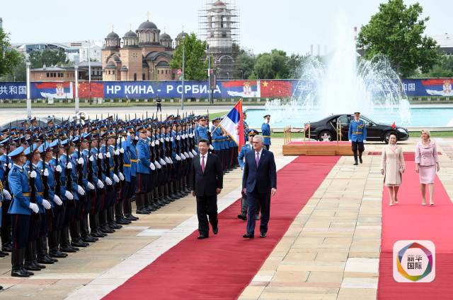6月18日,国家主席习近平出席塞尔维亚总统尼科利奇在贝尔格莱德举行的隆重欢迎仪式。新华社记者饶爱民摄