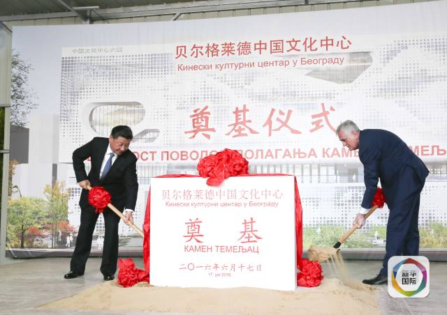6月17日,国家主席习近平同塞尔维亚总统尼科利奇在贝尔格莱德共同出席中国文化中心奠基仪式。新华社记者兰红光摄