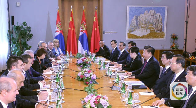 6月18日,国家主席习近平在贝尔格莱德同塞尔维亚总统尼科利奇举行会谈。新华社记者马占成摄