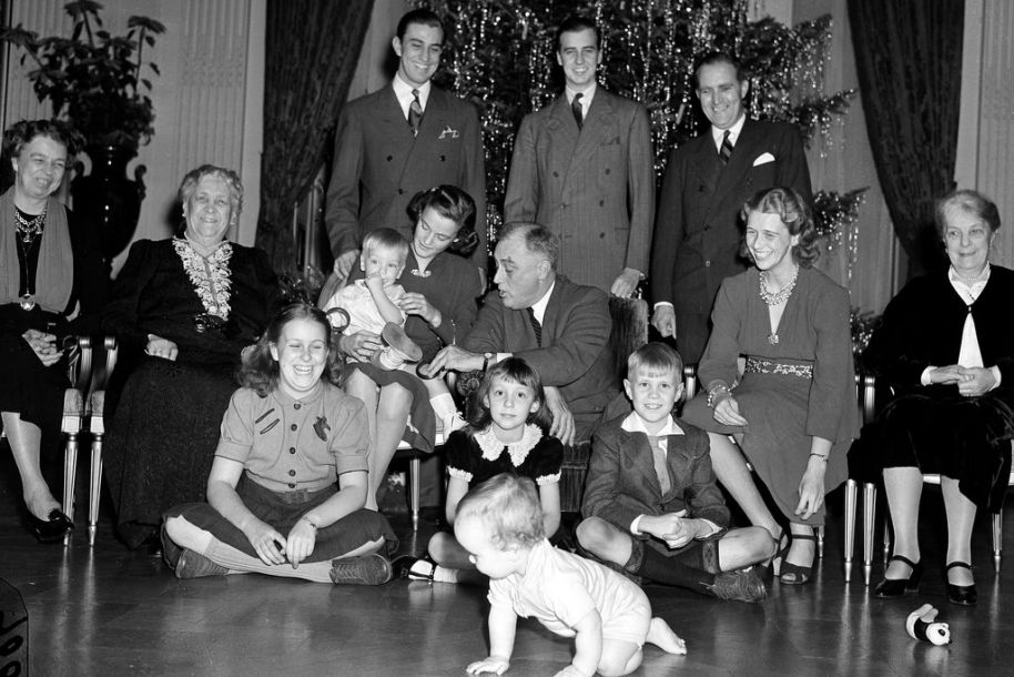 1939年,罗斯福总统(中)和家人们在一起。