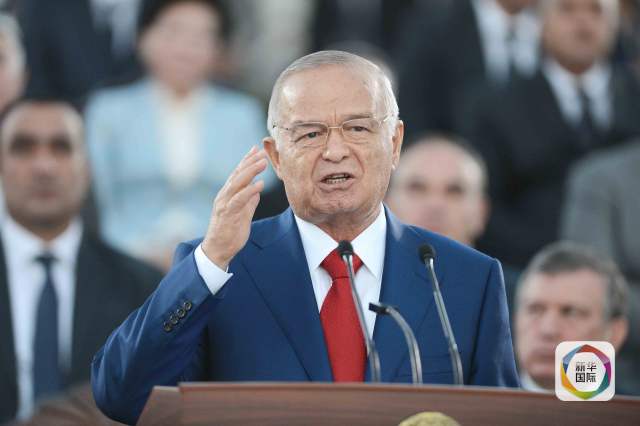 2015年8月31日,乌兹别克斯坦总统卡里莫夫在首都塔什干举行的独立日庆祝活动上向全国发表讲话。新华社记者沙达提摄