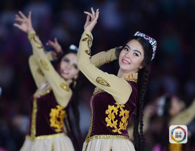 2015年8月31日,演员在塔什干举行的独立日庆祝活动上表演。当天,乌兹别克斯坦在首都塔什干的阿利西尔·纳沃伊公园举行文艺演出,庆祝乌兹别克斯坦独立24周年,数千人出席庆典。新华社记者沙达提摄