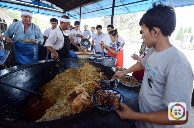 2013年8月19日,人们在乌兹别克斯坦首都塔什干的中亚抓饭中心准备品尝抓饭。新华社记者沙达提摄