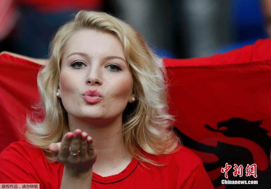阿尔巴尼亚的球迷出镜率相当高,她们真的是太会展示自己,瞧这位美女,轻松一个飞吻,就俘获了多少人的目光。