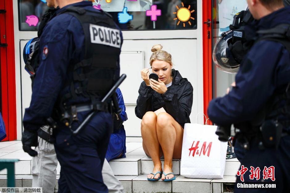 在英格兰与威尔士的大战之前,英格兰女球迷先在角落里补好妆,一会儿用最美的姿态为主队呐喊。