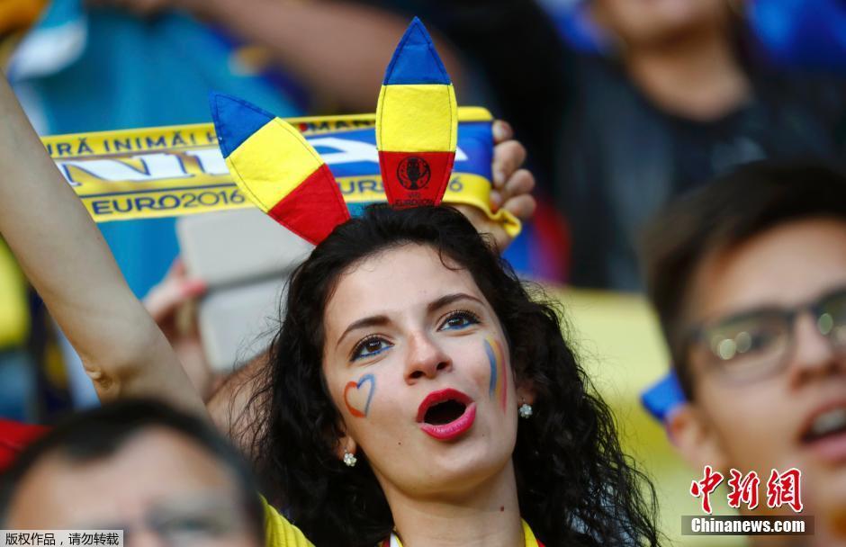 罗马尼亚球迷头上戴着国旗色兔耳朵,脸上还涂了国旗配色的油彩,不可谓不用心。