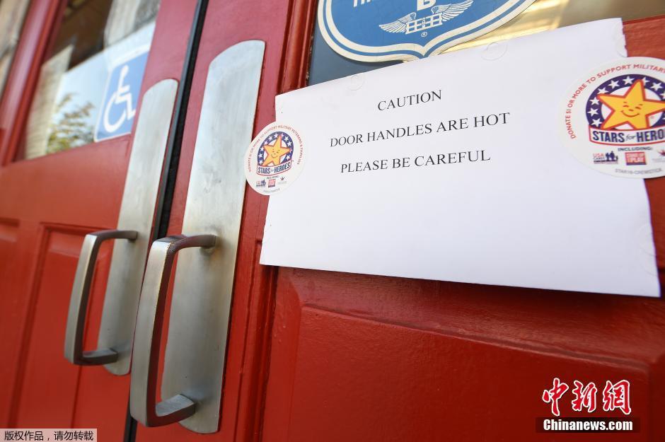 在加州阿祖瑟地区,当地一家款餐厅贴出告示,提醒顾客,小心门把手烫手。