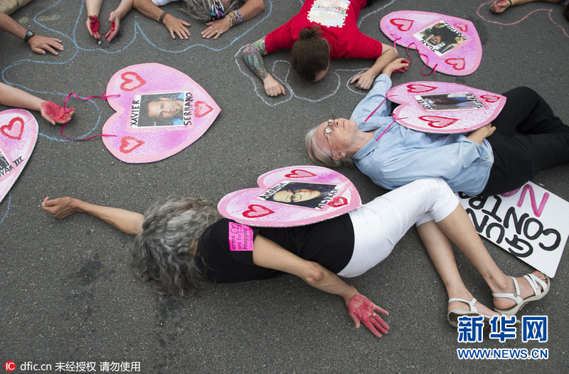示威者躺尸抗议奥兰多夜店枪击事件 呼吁禁枪(高清)