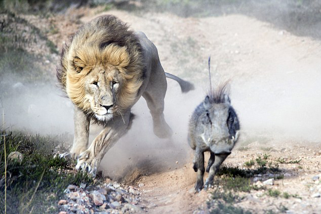 南非幼年疣猪雄狮爪下上演惊险逃生(图)