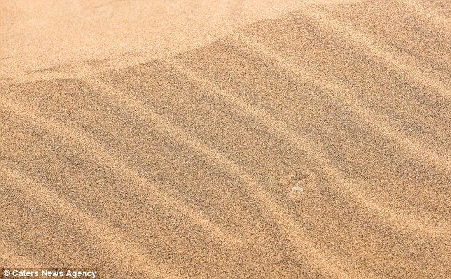 当这种毒蛇准备捕捉猎物时,几乎是很难发现的。眼尖的摄影师Wim Van Den Heever不仅在沙漠里发现了这条毒蛇,还拍下了蛇的伪装过程。