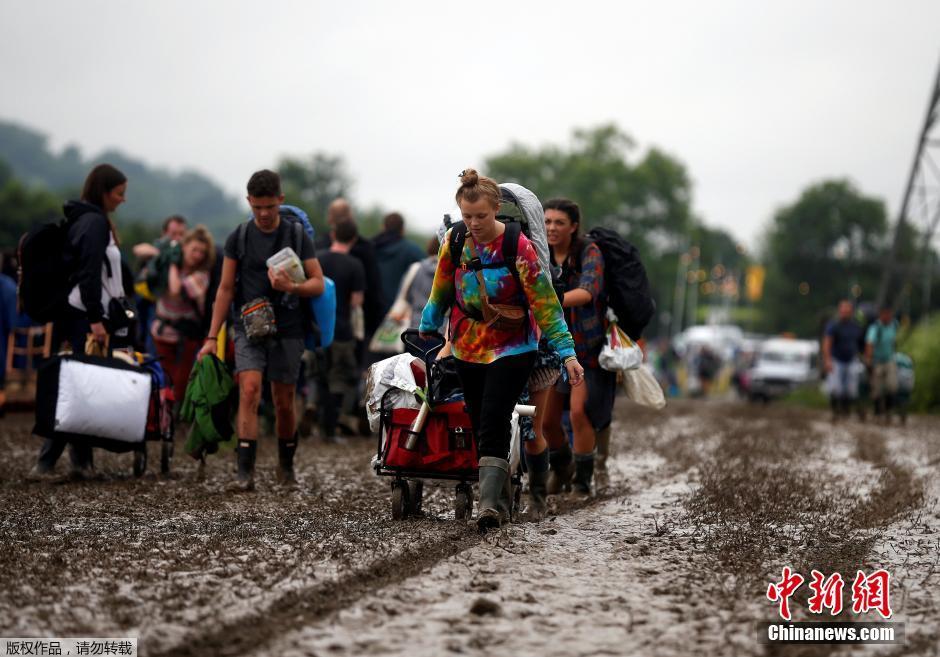 乐迷走泥路奔赴英国格拉斯顿伯里音乐节(组图)
