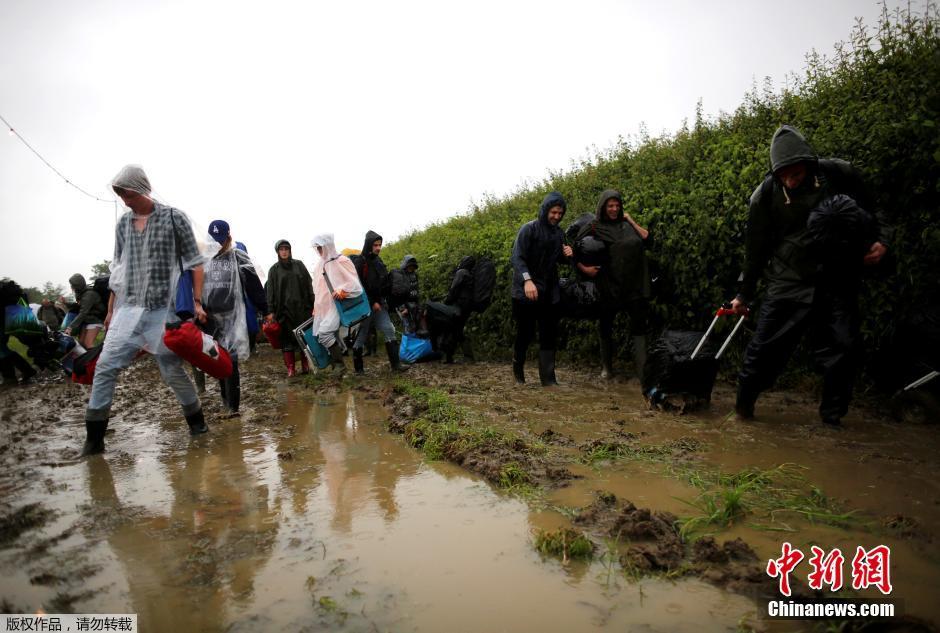 乐迷走泥路奔赴英国格拉斯顿伯里音乐节(组图)