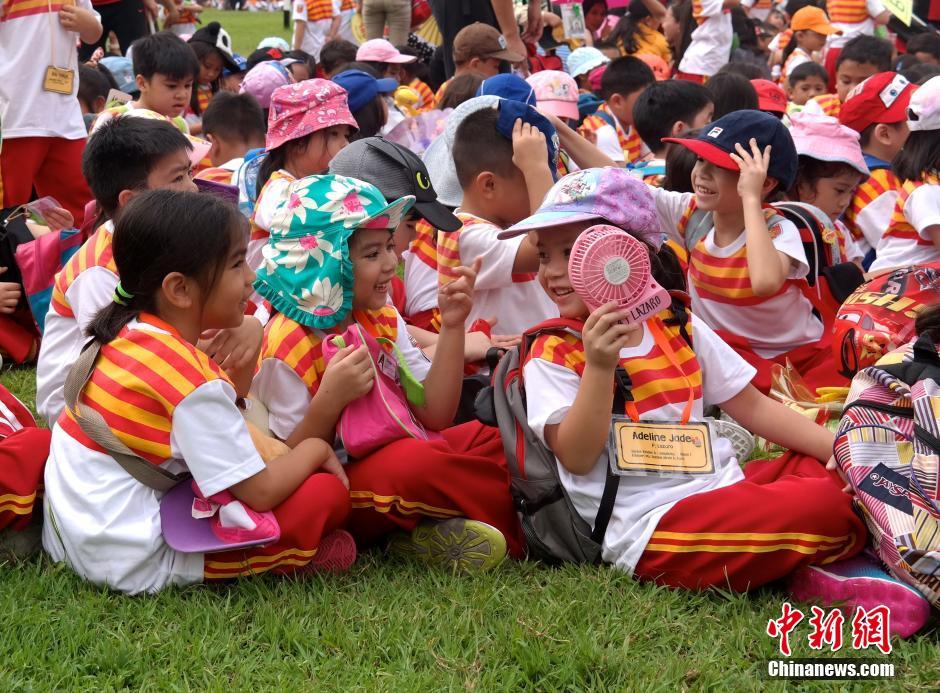 6月22日,菲律宾首都大马尼拉地区举行大规模地震应急演练活动。图为大马尼拉地区马卡蒂市一所学校的幼儿园学生在地震警报拉响后被紧急疏散到操场上。菲律宾位于环太平洋火山地震带,因地壳板块相互碰撞而导致地震频发。 中新社记者 张明 摄