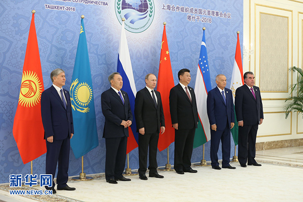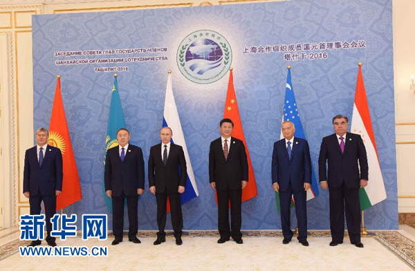新华社塔什干6月24日电(记者陈贽 霍小光 骆珺)24日,上海合作组织成员国元首理事会第十六次会议在乌兹别克斯坦塔什干举行。国家主席习近平同哈萨克斯坦总统纳扎尔巴耶夫、吉尔吉斯斯坦总统阿坦巴耶夫、俄罗斯总统普京、塔吉克斯坦总统拉赫蒙、乌兹别克斯坦总统卡里莫夫出席会议。习近平在会上发表重要讲话,强调要坚定遵循上海合作组织根本宗旨和原则,牢牢把握发展大方向,动态调整各领域合作方略,确保本组织生机活力。