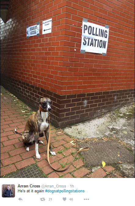 英国脱欧公投 投票站口等待的狗狗已先红(图)