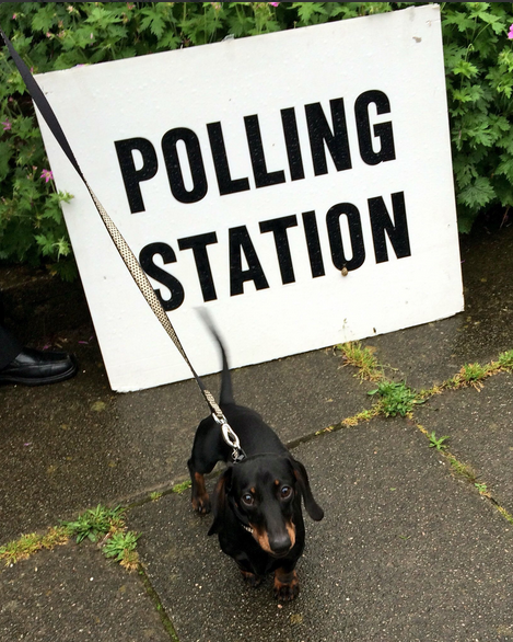 英国脱欧公投 投票站口等待的狗狗已先红(图)