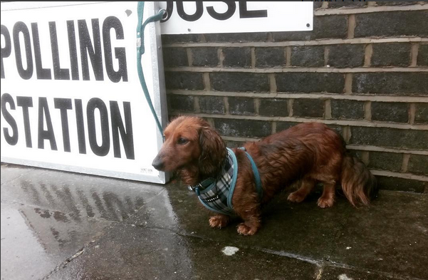 英国脱欧公投 投票站口等待的狗狗已先红(图)