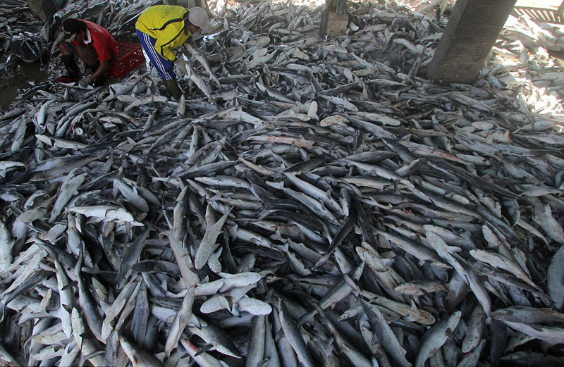 血腥鱼翅!印尼鱼市数万鲨鱼现场被割鱼鳍(组图)