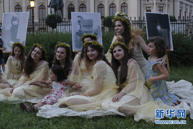 6月23日,在罗马尼亚首都布加勒斯特,两个小女孩与仙女装扮的姐姐们合影。每年的6月24日是罗马尼亚的传统节日仙女节,民间通常会在23日夜晚举办庆祝活动,女孩子们身穿长裙,头戴花环,手拉手跳舞,祈福爱情、健康。传说,这个节日始于罗马尼亚人的祖先达契亚时代。 新华网发(佩特雷斯库摄)