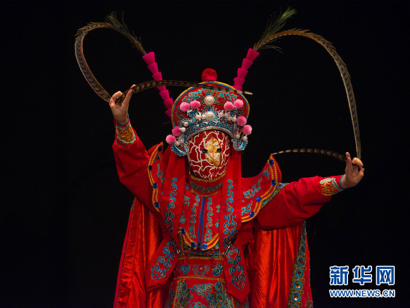 6月19日,在西班牙瓦伦西亚,川剧变脸大师龙怡策在舞台上表演。当日,一场名为“武之禅”的大型舞台剧在阿尔沃拉亚市政府剧院上演。新华网发(贺耀龙摄)