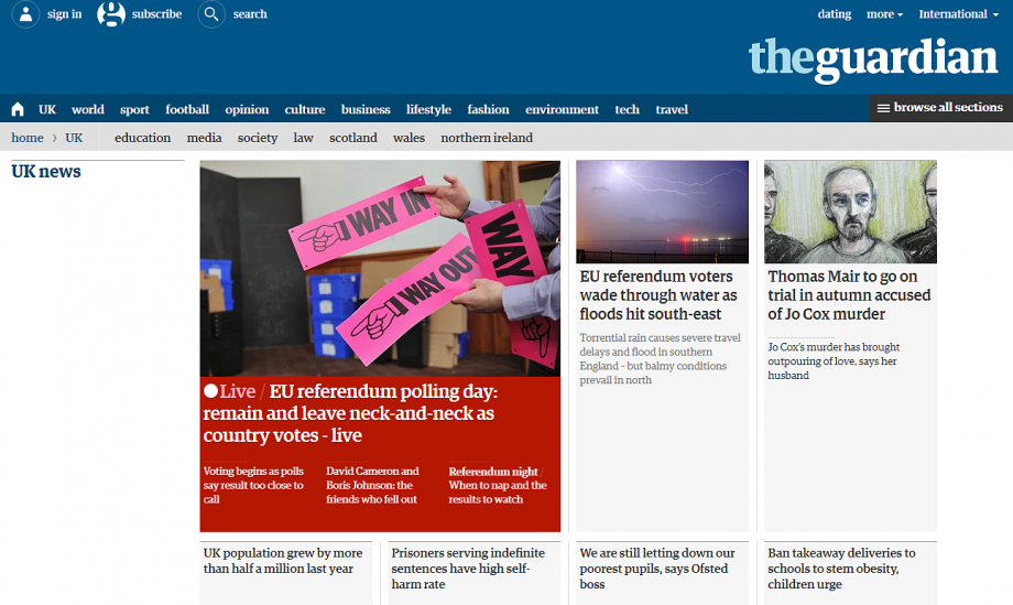 英国《卫报》:英国全民公决投票日。