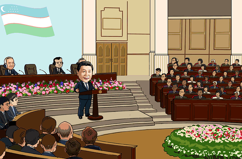 6月22日,正在乌兹别克斯坦访问的国家主席习近平在塔什干乌兹别克斯坦最高会议立法院发表题为《携手共创丝绸之路新辉煌》的重要演讲,提出构建互利合作网络、共创新型合作模式、打造多元合作平台、推进重点领域项目的新主张,为推动“一带一路”向更高水平、更广空间迈进指明了方向。当天,习主席和卡里莫夫总统在塔什干共同出席“安格连-帕普”铁路隧道的通车视频连线活动。