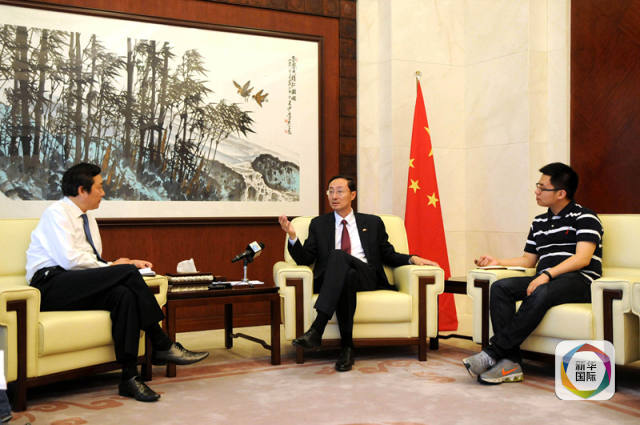 6月23日,在巴基斯坦伊斯兰堡,中国驻巴基斯坦大使孙卫东(中)回答新华社记者提问。(新华社发艾哈迈德摄)