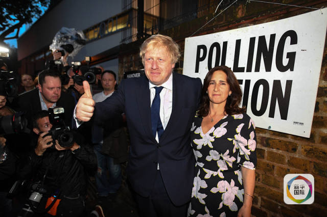 6月23日,在英国伦敦,伦敦前市长鲍里斯·约翰逊与妻子来到一处投票站投票。(新华社发)