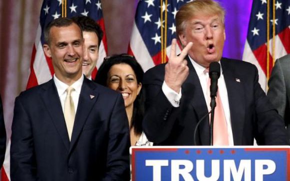 特朗普竞选团队经理科里·莱万多夫斯基(左)