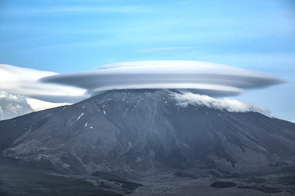 这种给人带来错觉仿佛外星人入侵的碟形云一般会形成在大气层的最低端。当稳定湿润的气流遇到山脉阻拦,便会滞留在山的一边。于是山脉像一块被投进河里的石头,气流绕过山脉并在山的四周形成并游走奔流。随后气流慢慢顺着山体上升,水蒸气慢慢冷却并盘旋在气流的顶端,便形成了碟状云雾。但当气流消失,云雾也会随之消失。