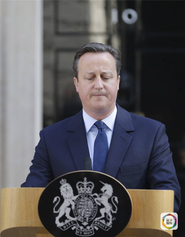 6月24日,英国首相卡梅伦在伦敦唐宁街10号首相府前发表讲话。新华社/美联