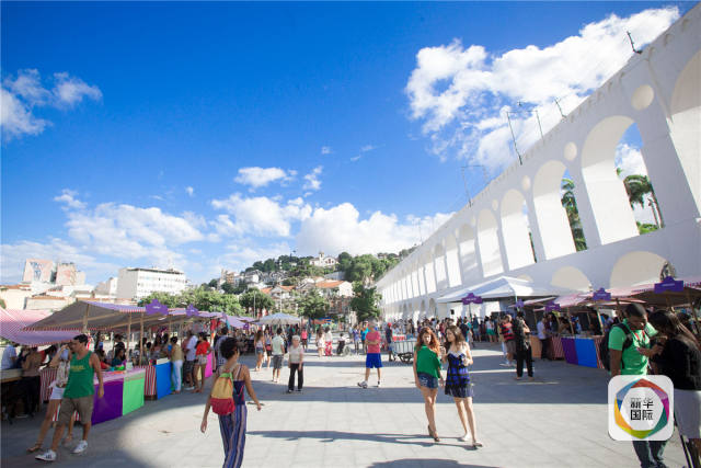 图为2015年4月25日,游人穿行在里约热内卢拉帕桥下的小广场上。新华社记者徐子鉴摄