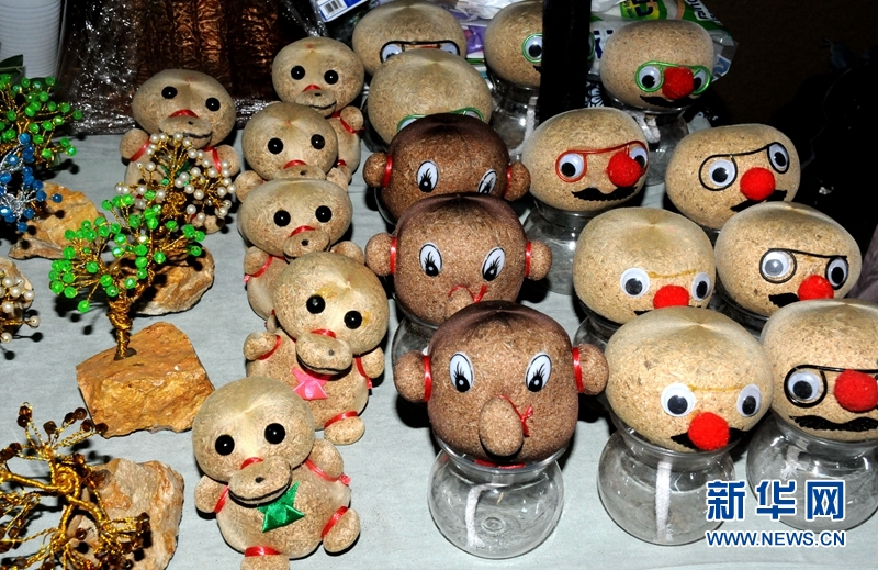 约旦彩虹街的手工艺品市场上,各种造型的水栽花。新华网发(程春香 摄)