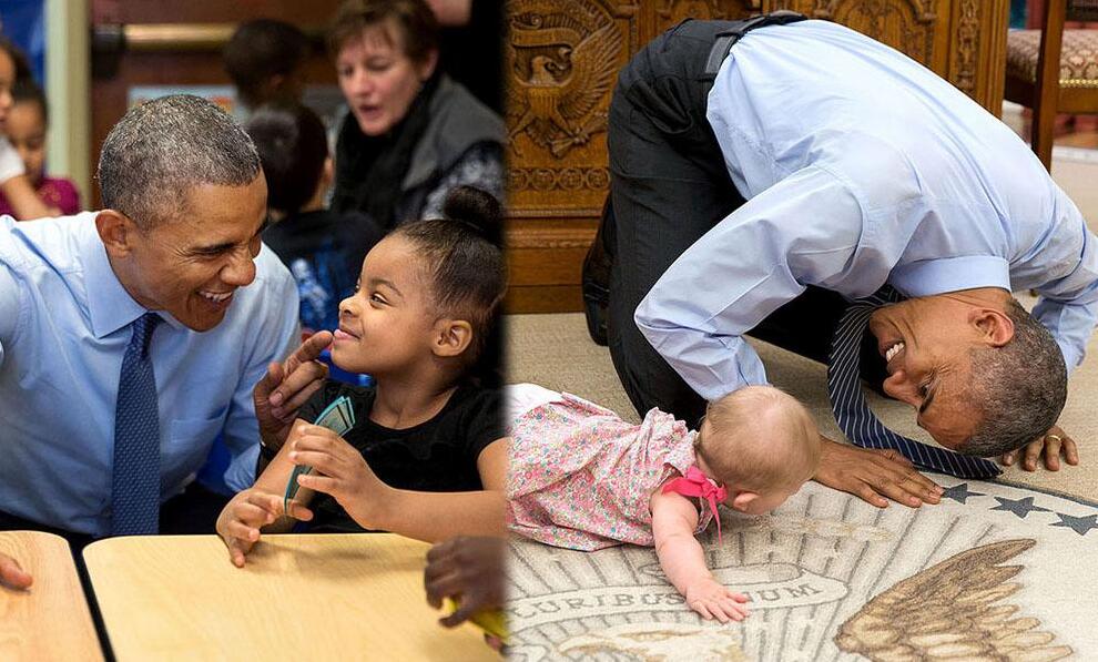 据香港《明报》网站报道,白宫摄影师索萨(Pete Souza)8年来为美国总统奥巴马拍下200万张照片,其中不少是与小朋友互动的一面,让这位两女之父的总统先生展示慈父、搞怪的样子,留下亲切灿烂的笑容。