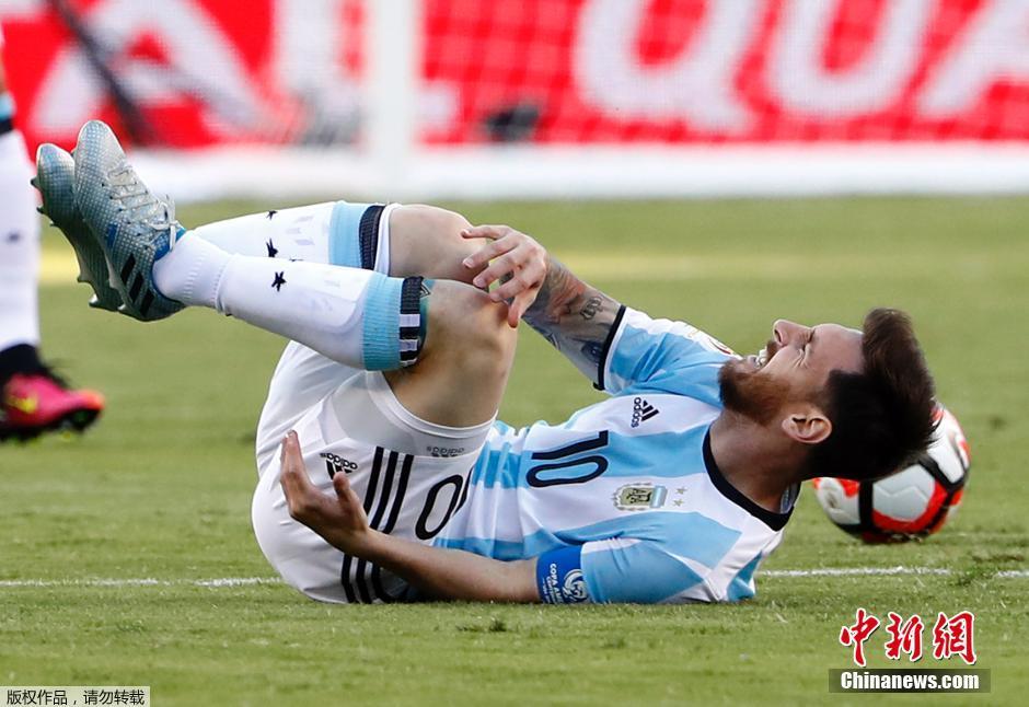 据外媒6月27日报道,阿根廷球星梅西正式宣布,将退出阿根廷国家队。阿根廷连续第3年倒在了大赛决赛中,百年美洲杯决赛,他们再次输给了智利。本场比赛之后,球队队长梅西宣布退出阿根廷国家队。图为6月17日,梅西在美洲杯对阵委内瑞拉对比赛中受伤倒地。