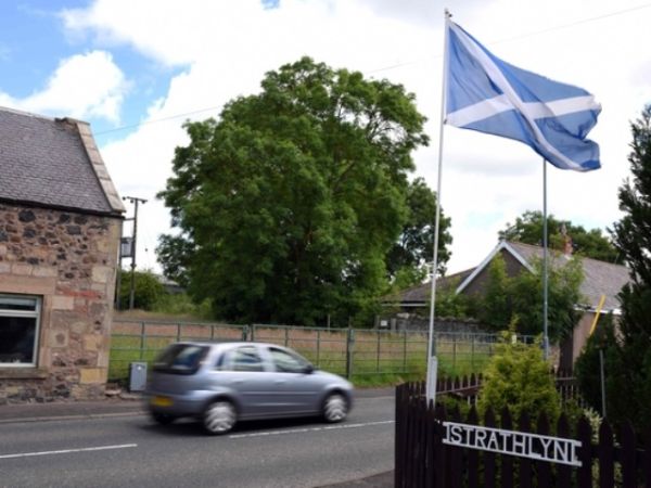 6月26日,一辆小汽车驶过苏格兰村庄伯厄姆街道。