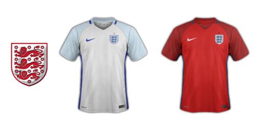 英格兰三狮队本次球衣依旧由NIKE操刀。主场球衣主色仍然是白色,细节处比如两袖,采用了蓝色。客场球衣是鲜艳的红色。
