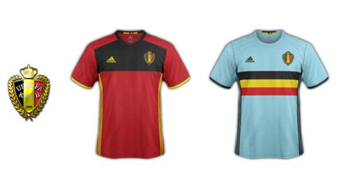 比利时队队服由Adidas赞助。比利时主场球衣主体为红黑两色,侧边以黄色的Adidas标志三条纹作为点缀。客场球衣主色为天蓝,胸前有横放的拉长了的比利时国旗。