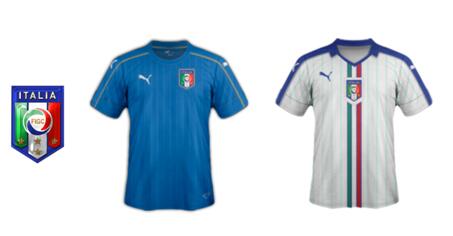 意大利队的赞助商也是Puma。主场球衣采用深蓝作为主色,设计简洁。客场球衣在中央加入了意大利国旗元素,白蓝两色作为主色。小翻领的设计也很独特。