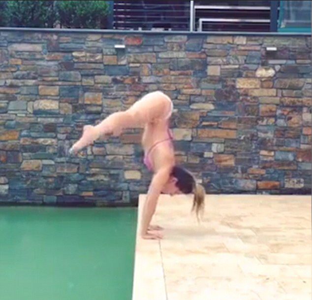 视频中,只见穿着一身粉色比基尼泳衣的美女趴在泳池边,似乎是在思索该如何“优雅”地出水。几秒种后,她便为人们表演了一套专业体操出水动作。只见她背对泳池一侧,双手朝下撑在泳池边上,仅靠双手便将自己的身体直立起来,轻松完成了一个双手倒立。她保持了几秒,似乎是想要展现一下自己的好身材。