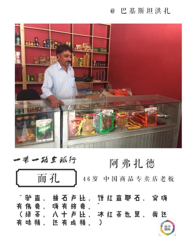 遇到阿弗扎德,是在海拔2400米的阿里阿巴德。这里天高云淡,雪山巍峨。在中巴友谊之路路边,阿弗扎德经营着一家 中国便民商店 ,专卖中国商品,生意相当不错,当地人都颇为羡慕。↓↓↓