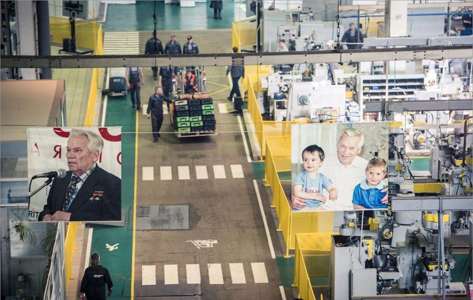 从车间主任办公室就可以俯瞰整个车间,车间内也能看到多张卡拉什尼科夫的照片。