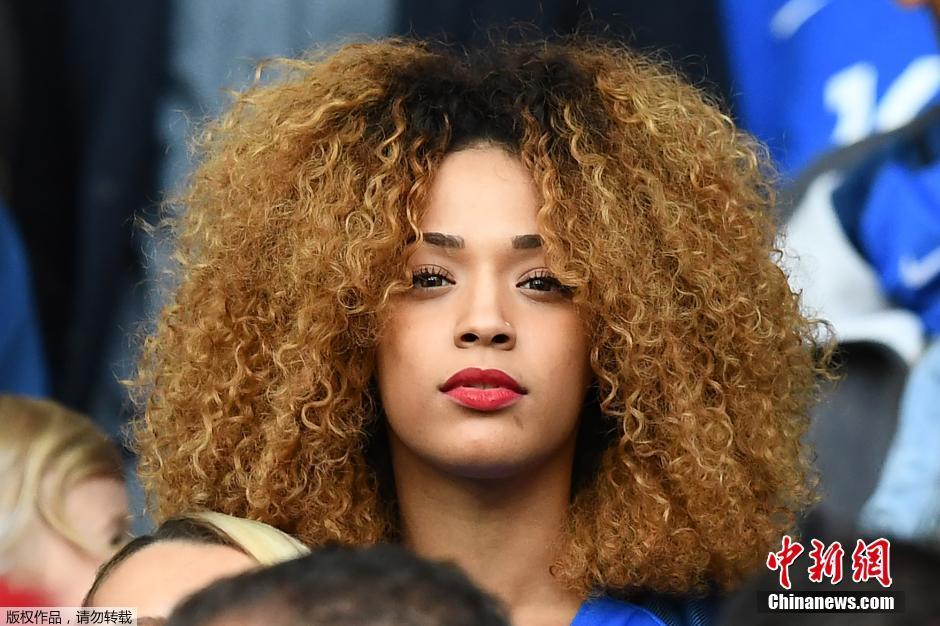 法国球员科曼的太太Sephora,她的爆炸头在太太团中可谓另类。