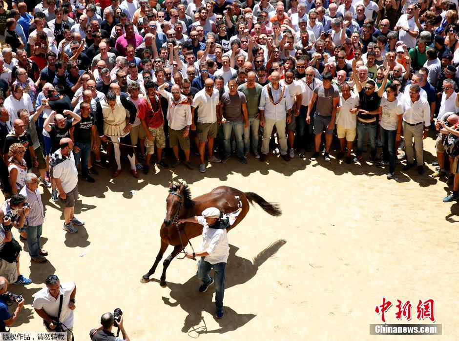 意大利古城锡耶纳举行无鞍赛马节 场面惊心动魄(组图)