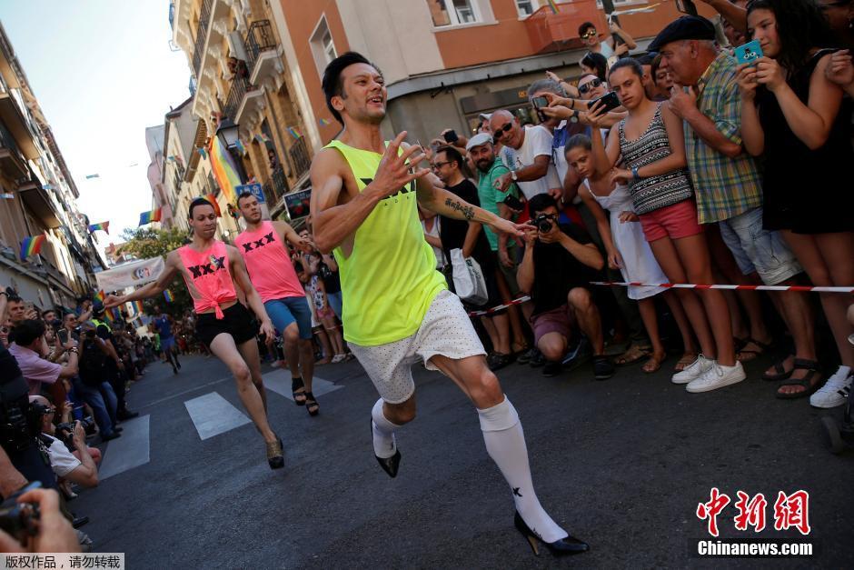 西班牙举行高跟鞋赛跑 男生踩“恨天高”狂奔(组图)