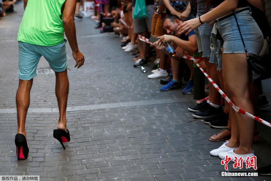 西班牙举行高跟鞋赛跑 男生踩“恨天高”狂奔(组图)