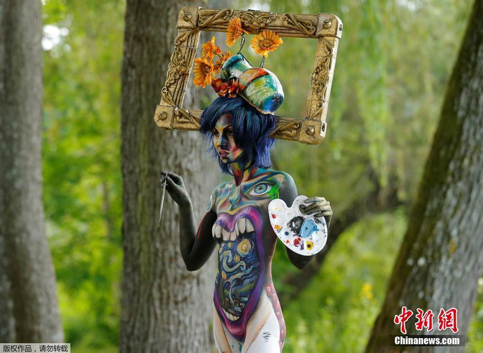 奥地利举行人体彩绘节 绚丽图案吸睛(组图)