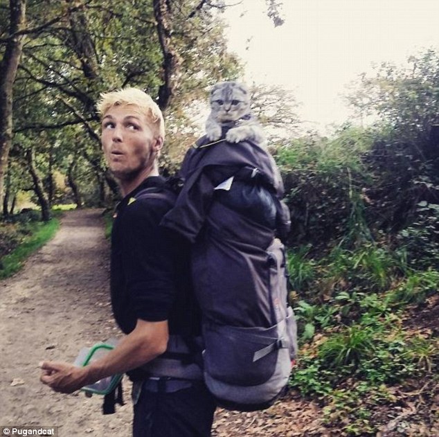 两男子带萌猫萌狗徒步漫游西班牙(图)