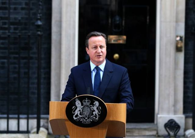 6月24日,英国首相卡梅伦在伦敦唐宁街10号首相府前发表讲话。英国脱欧公投结果24日揭晓后,英国首相卡梅伦宣布将辞职。