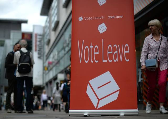 6月24日,曼彻斯特街头上支持英国脱欧的宣传海报。